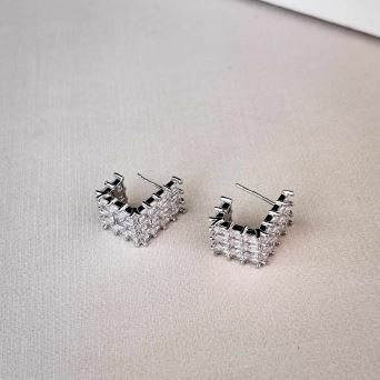 Brinco Argola Quadrada Zircônias Banhada Ródio