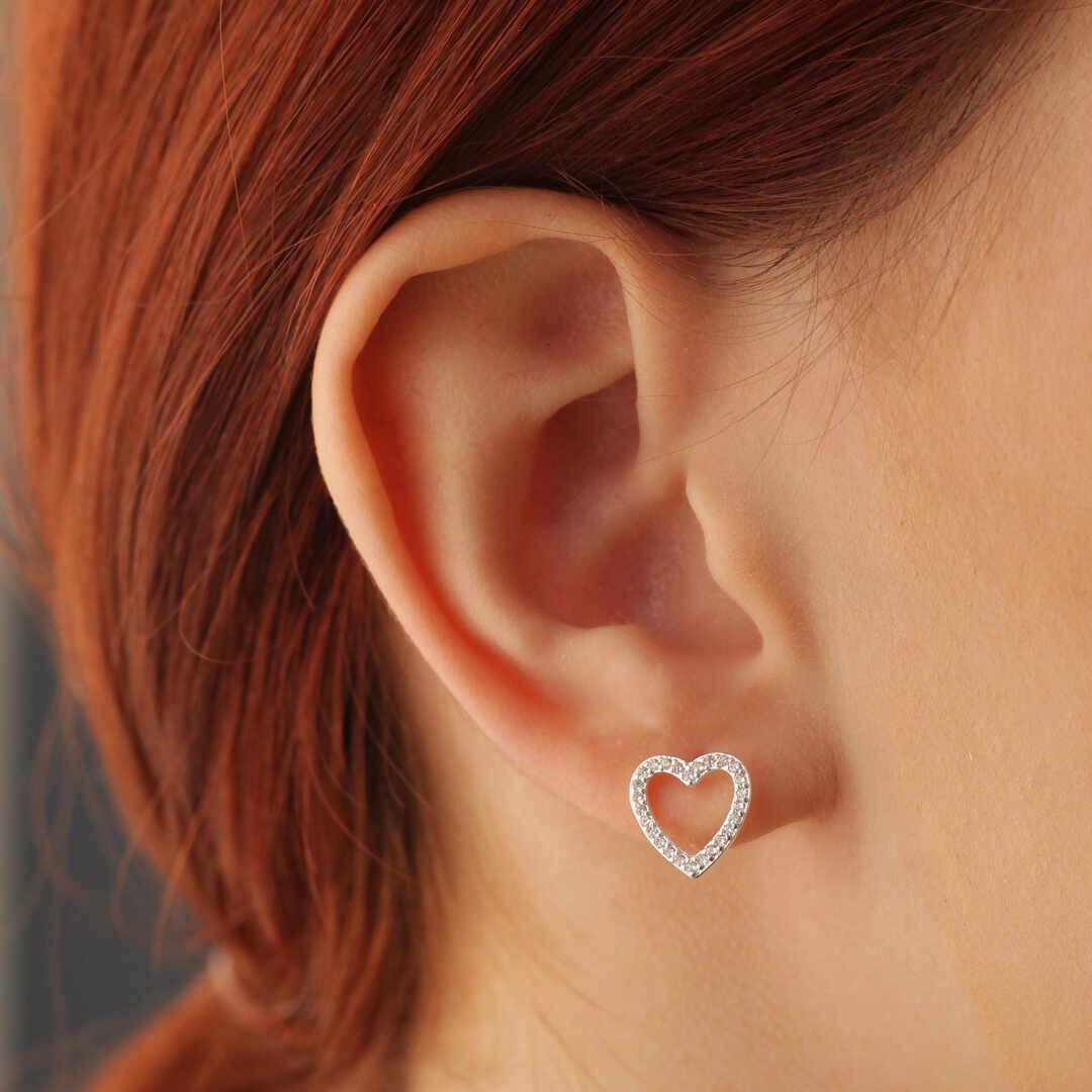 Brinco Coração Vazado P Cravejado Banhado Prata
