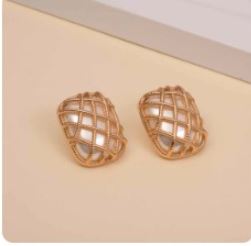 Brinco Retangular Pérola com Fios Cruzados