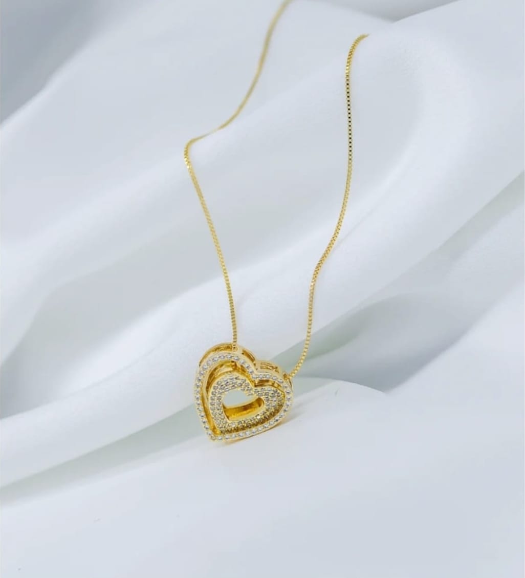 Colar Coração Cravejado Vazado