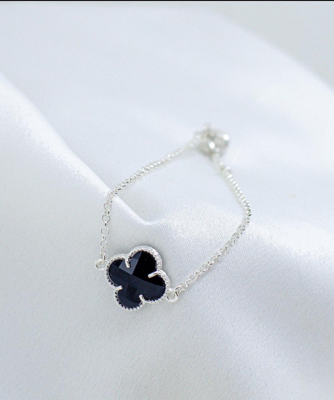 Pulseira Trevo Preto Prata 925